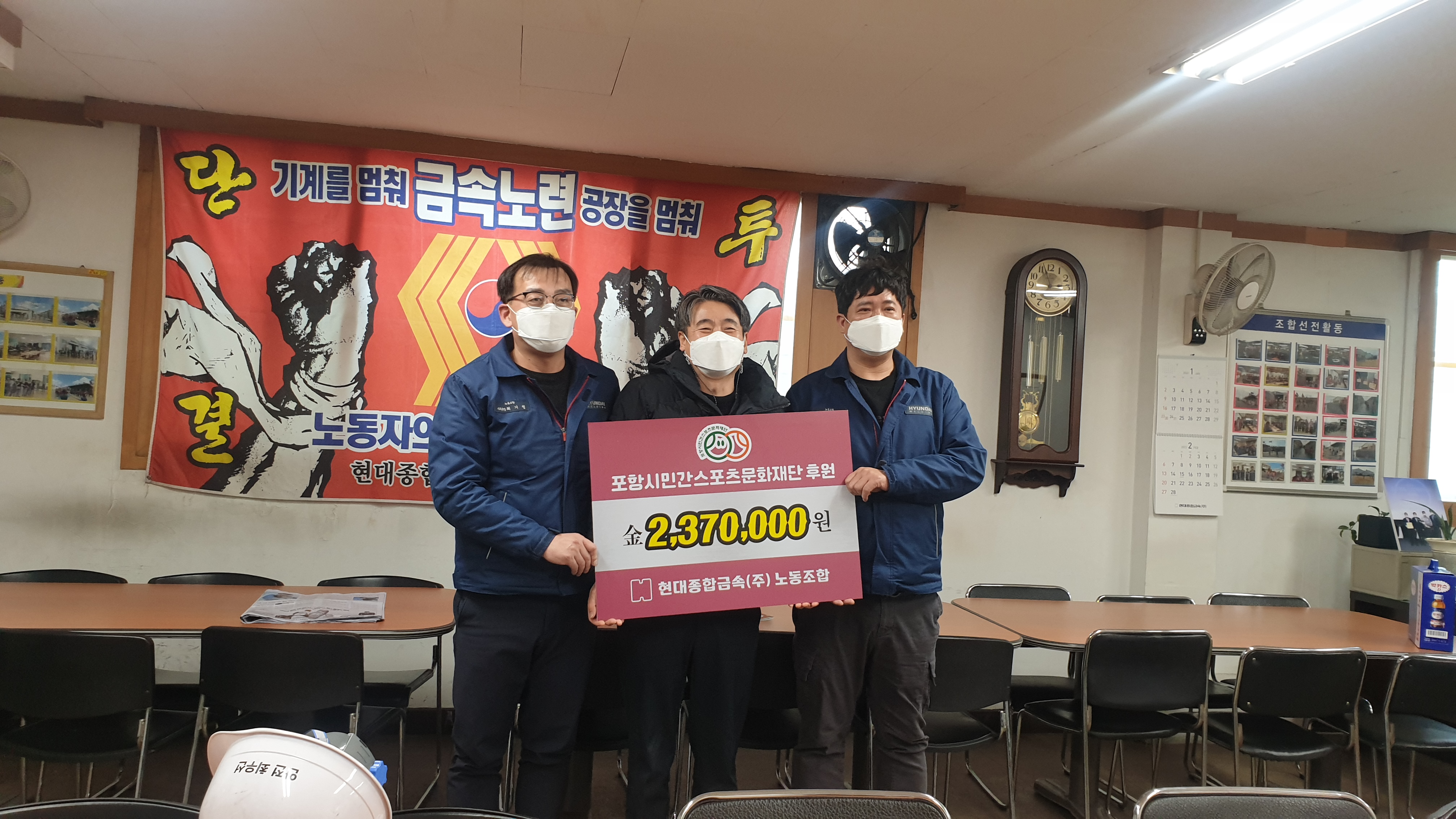 현대종합금속(주)노동조합, 포항시민간스포츠문화재단에 성금 237만원 전달