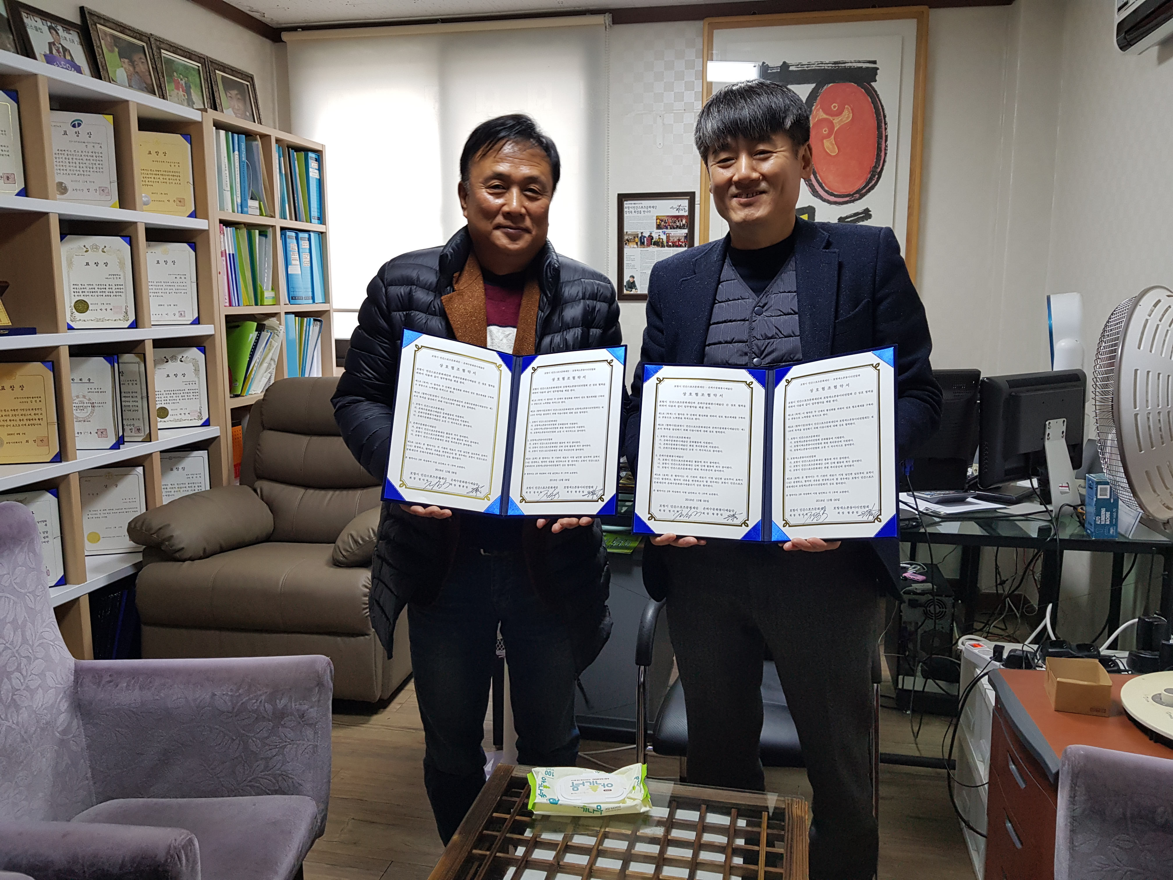 오늘 1시30분경 포항색소폰동아리연합회.은하수문화봉사예술단과 MOU체결 하였습니다.