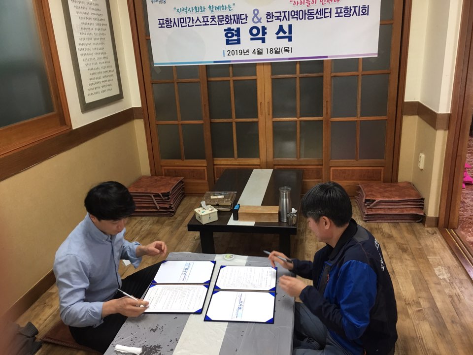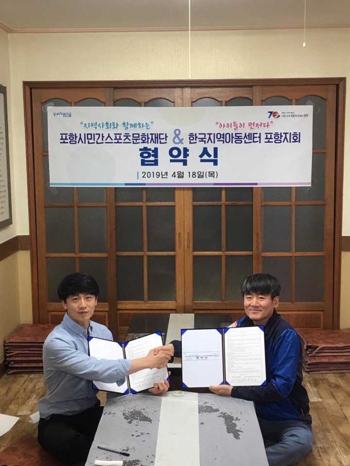 4월18일 한국지역아동센터 포항지회 와 협약식이 있었습니다.