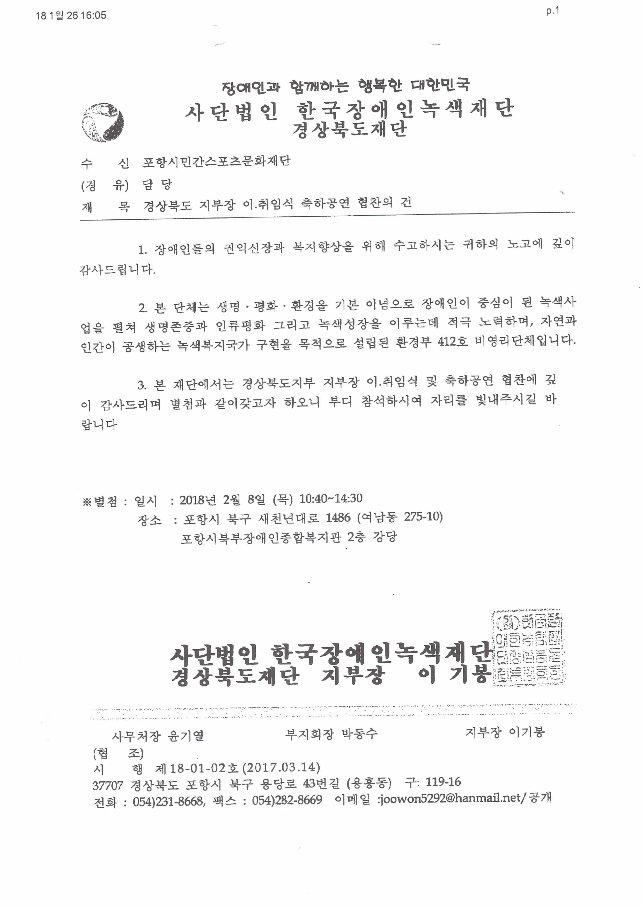 한국장애인녹색재단 경상북도지부장 이.취임식
